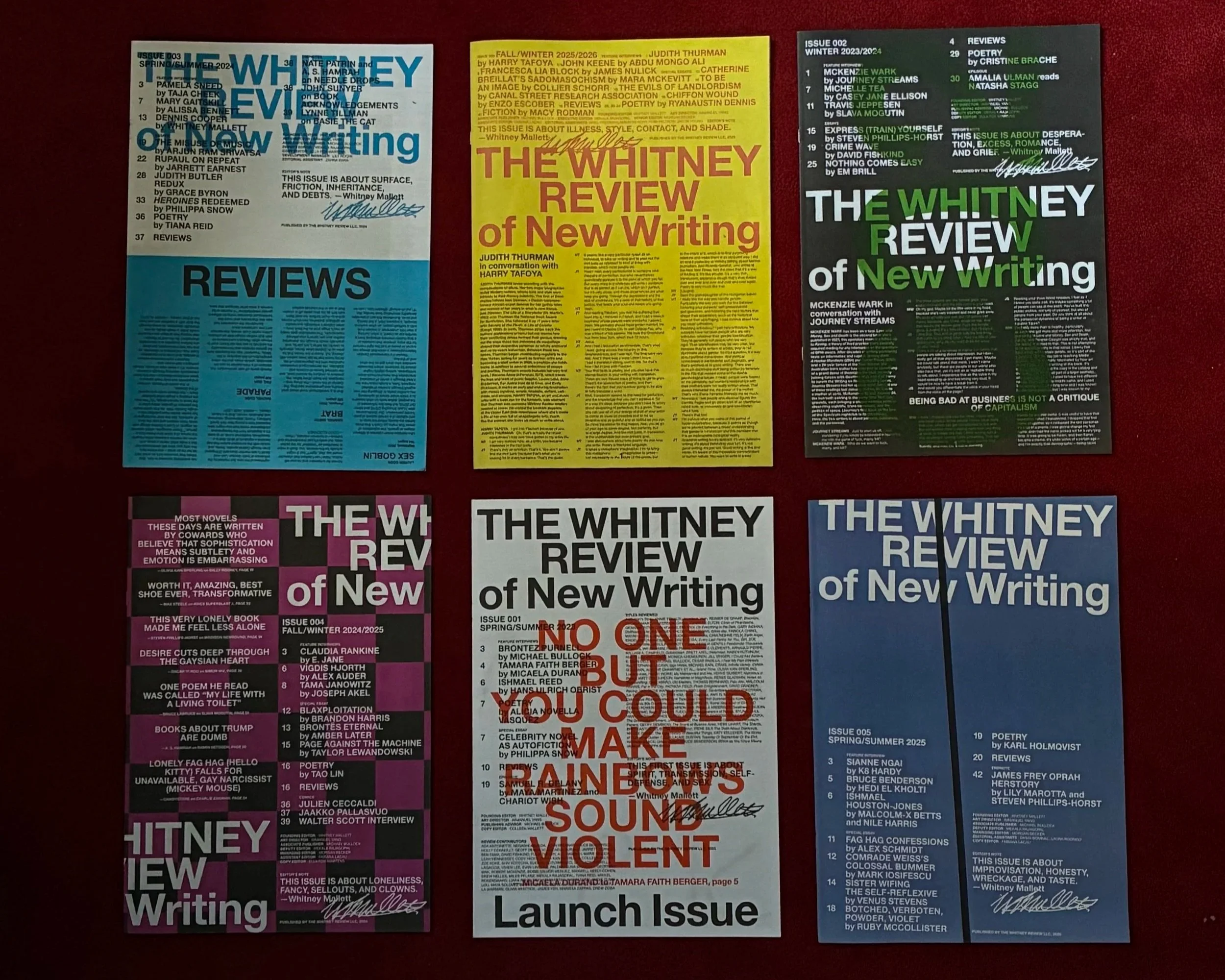 The seventh issue of The Whitney Review of New Writing marks three years of the project’s evolving interdisciplinary approach to literary criticism. The new issue features conversations between Christina Catherine Martinez and Ariana Reines, Darius James and Taylor Lewandowski, Lisa Carver and Esra Padgett, and Sophie Becker with Bonnie Erickson, the designer of Miss Piggy; essays by Cristine Brache, manuel arturo abreu, and Savannah Knoop; poetry by Precious Okoyomon; and over 70 short-form reviews: contributors like A. S. Hamrah, Grace Byron, Tash Nikol, Drew Zeiba, Blush Bullseye, Funto Omojola, Brad Phillips, Saam Niami, Morgan Becker, Eric Schwartau, Skype Williams, Paul Kopkau, and Mark Iosifescu respond to new writing across fiction, performance, poetry, art, theory, politics, and the in-between.